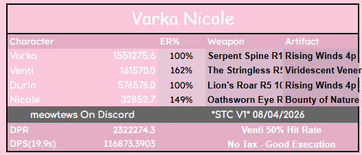 Прикинул в куркуляторе, с атласом, пиро-резонансом, 600 атк от Нико и 65% атк от пассивки, и с хорошими проками атк в цветке, пере и часах - около 4300 атк выходит. Нормально, жить можно.