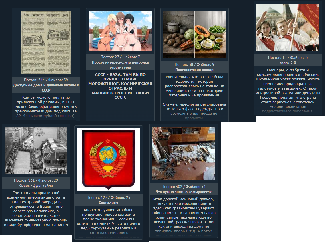 >>62366551 чем вам гулаги не актуальная проблема? >>62364406 лaxта обычно сталкивает совок с имперашкой и устраивает дискуссии про вов и голодоморы, чтоб пол-треда пруфами и секретными документами засрать. остальное это троллинг, выебоны парочки шизо-совков и параллели с текущими событиями