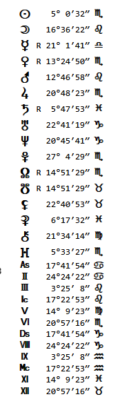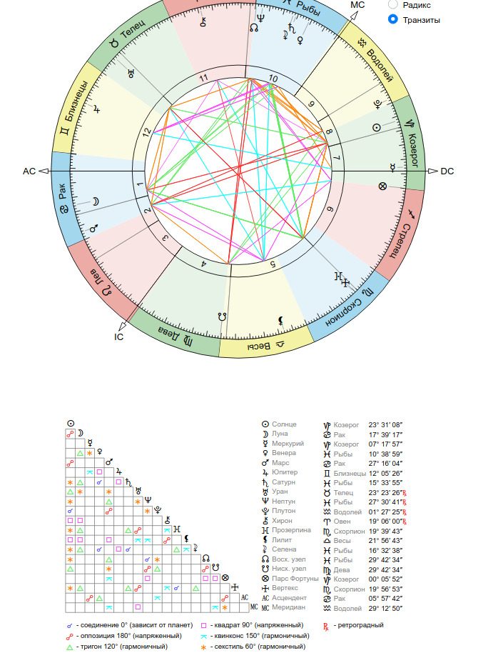 1. Скриншот с натальной картой. Желательно прикрепить таблички с аспектами и градусами планет и домов. Всю хреновину, что программа выдаёт сбоку или внизу карты.