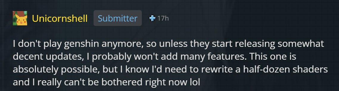 >>6732693 Давно уже не слежу и скипаю в альттабе весь пиздеж. Даже когда появляется что-то интересное, это все равно уже ощущается как ложка меда в бочке дерьма, поэтому просто смотрю на ютабе выжимку из последнего лора раз в патч.