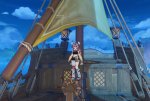 Сэйрэй может быть и круто выглядит в моменте, но исследовав половину этой локации я могу сказать, что этот корабль - самое красивое место здесь. Хотя бы потому что глаза ужасно устают наблюдать все эти вспышки молний. Ближе к статуе архонта у меня глаза чуть ли не плавились пока я решал головоломку с нажимными плитами.