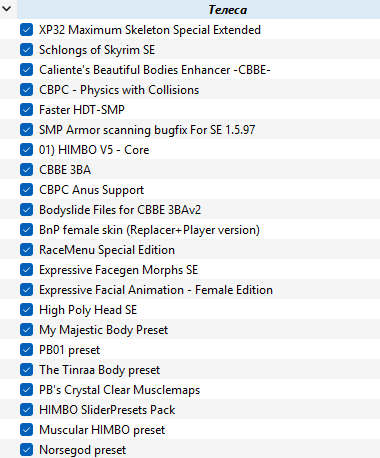 Слушай, ну по идее ты говоришь правильно... Хотя 3BA и так перезаписывает CBBA. А что насчёт мужиков - хз, у меня даже в BodySlide не показываются пресеты мужских тел, но мне как-то и похуй - главное, что бы на девочек всё сидело...