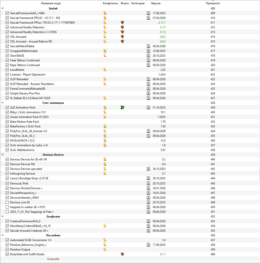 Ostim и sexlab p+ нельзя одновременно поставить?