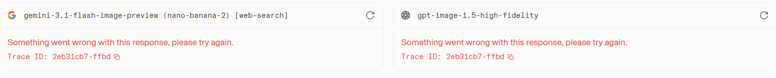 И как блять это вообще работает, конкретно именно на арене цензурит аутпут, а на других сервисах да и на официальных сервисах гугла всё нормально и это притом сука что на арене нет хуйни которая анализирует изображение!!! а цензура то сука не на текст. КААААК. И это же не просто ошибка, потому что котиков то стабильно генерирует