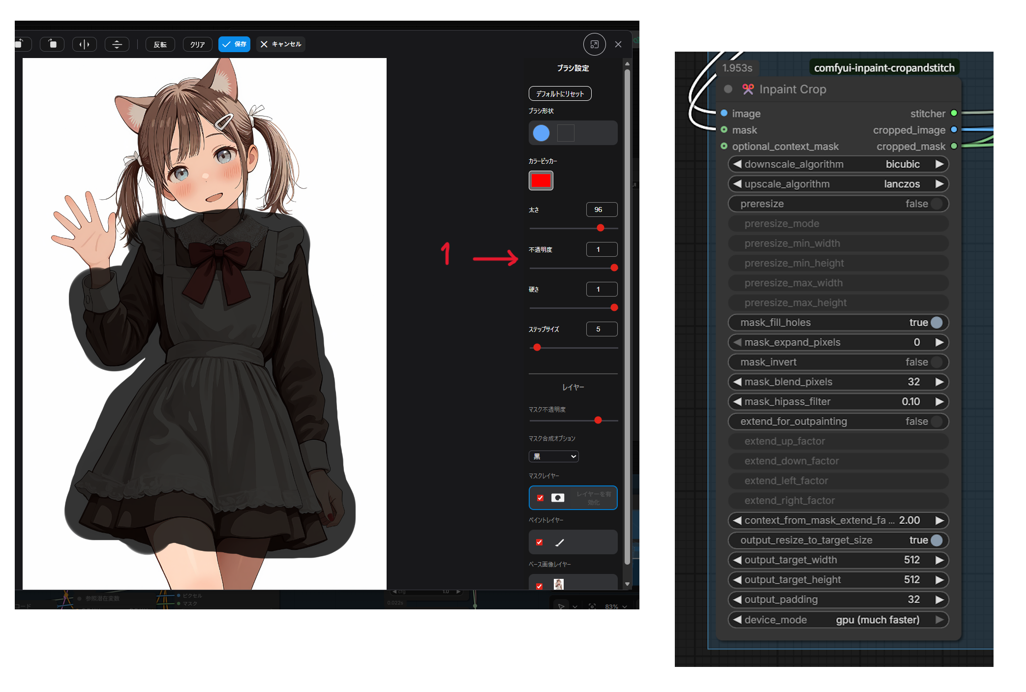 Вижу что у японца сжатие происходит в Inpaint Crop. Но как оно потом расширяется обратно?