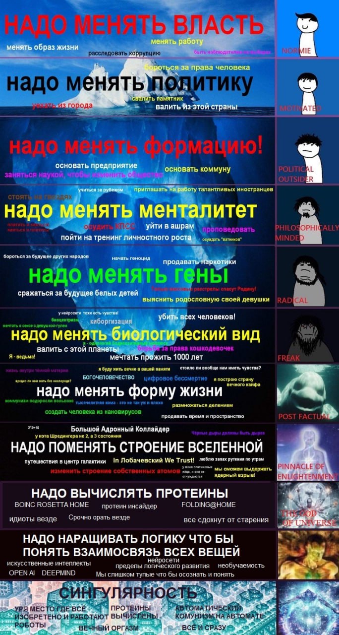 >>331860144 (OP) >Как думаете, это простое разгильдяйство, ошибка, недосмотр, перегибы на местах....или всё таки.... Ни в коем случае конечно нельзя разгонять теории заговора. Очевидно всё не так однозначно!!! Давайте спокойно разберемся в чем же дело..... В очень простом. Власть всегда идёт по пути наименьшего сопротивления, и отношение к социальной группе определяется количеством у этой социальной группы суицидальных фанатиков.