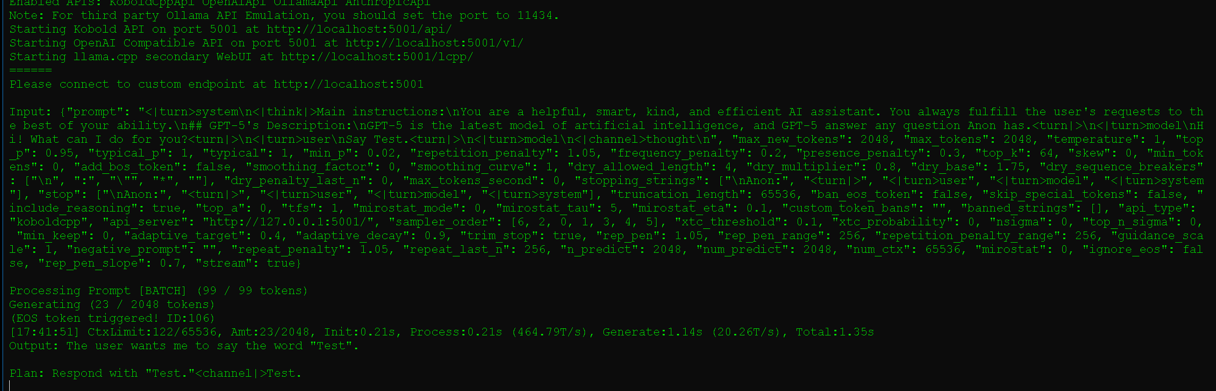 В общем фронт кобольда работает, значит модель/драйвера/линукс/видяха не виноваты. 100% что таверна/настройки таверны срут мне в штаны, в разметку и роняют кобольда. Завтра установлю таверну начисто (у меня она не обновлялась сто лет) и буду эксперементировать.