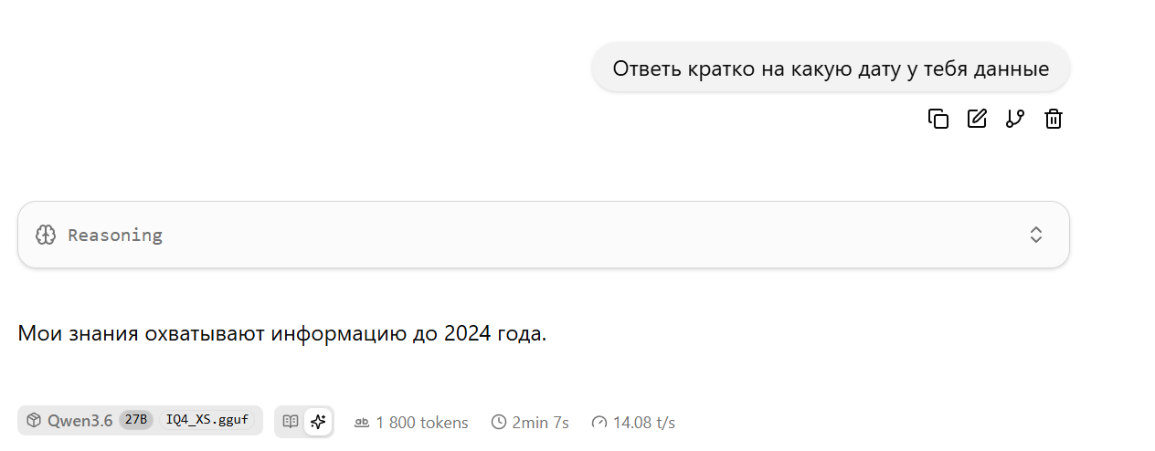 Хм~ Qwen 3.6 27b довольно интересен. всё ещё пережарен соей но не так сильно. Намного более ориентированный на цель. Но русский плох, как рассказчик плох. Но блин, он прямо рвётся к цели. Неважно какой.