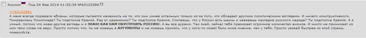 Русофобию вообще надо запретить. На 4чане же за обзываение americunts'ев банят? Банят. Вот и у нас надо за русофобию банить.