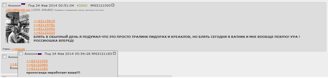 Как бе нет. Русофобы - не выдумка ватников. Слишком много поехавших троллей с троллекоастером головного мозга и откровенно русофобов. Которые ЛЮБОЙ пост отличный по тематике от РАШКА ВПЕРДЕ считают запутинским (обычно они просто пытаются сказать, что они против Путина, при этом в постах то и дело прорывается рузке унтеры рабы и прочее издевательство над здравым смыслом). Анона >>133104 я двачую неистовейши. Ебанаты, у которых троллектоастер хас ноу брейкс, остопиздели, они срут ВЕЗДЕ, они постят ватника в поняче, они рассуждают в вахаче про то, что имперцы - пидарашки, они набегают на военач, чтобы создать очередной тред ПОСМОТРИТЕКАКТЕСОЛДАТЫГОРЯТЗАЖИВОВТАНКЕДАВАЙТЕПОСМЕЕМСЯ, они троллят анимач, они троллят б, они троллят тематические доски с менее мейнстримным контентом, многие из них считают, что это искрометные троллинг/унижение русни. На самом деле это как полупьяный слесарь Петрович решил приколоться над посетителями ресторана и насрал посреди ресторана. Но ведь ежу понятно, что он мудак и обосрался, а не троллид. Разве не так, няша?
