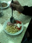 Эт в школе чувак по блату хавает. У него мамка друга поварихой работает.