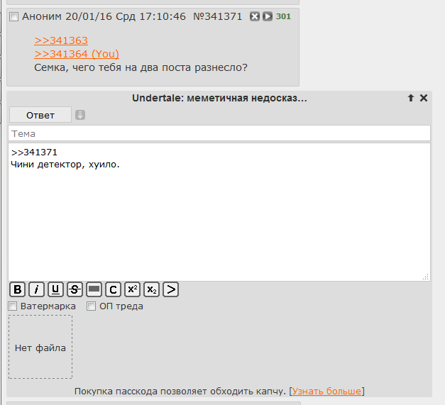 >>341596 >Был Опом первого понитреда Матерь божья... Пришло время обычным сосачеопущенцам и анимедаунам объединить усилия перед общим врагом. Расчехляйте репорты, братья!