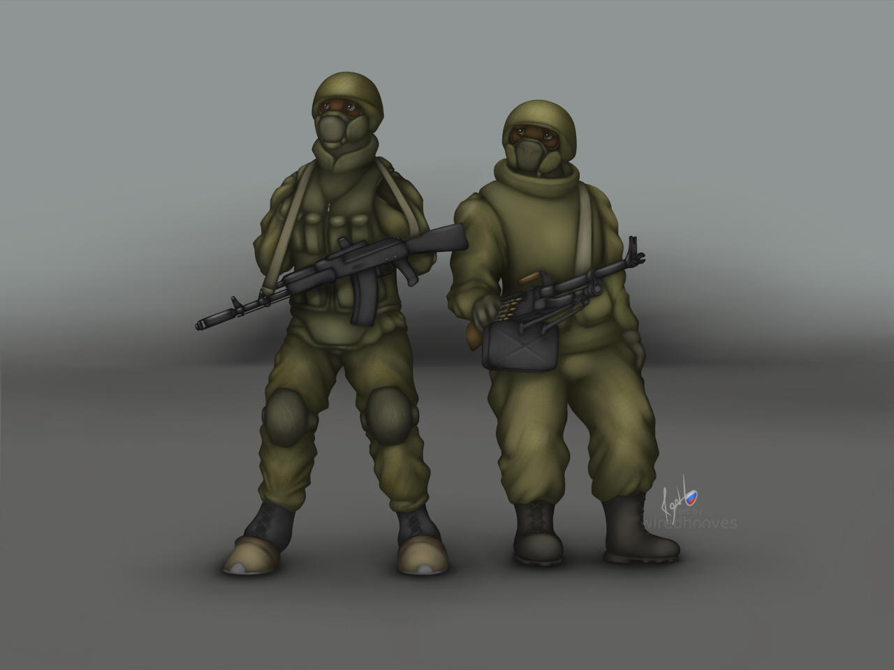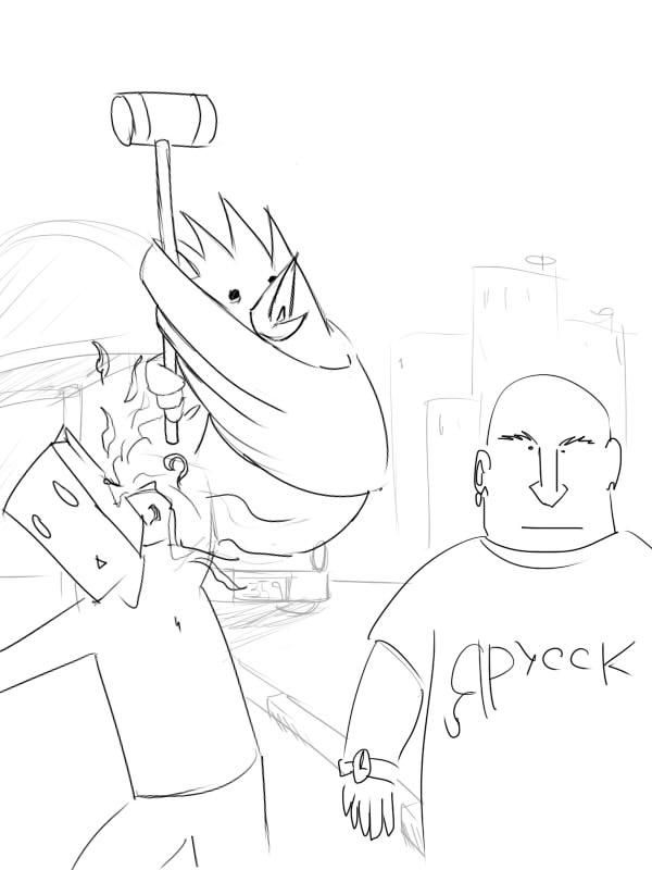 Второй — боевой фурри-носорог почти как в ТМНТ, да с сигарой и М60 в руках. Естественно, накачаный, морда в шрамах и прочая брутальность. Эдакий Рэмбо-носорог, надеюсь ты понял.