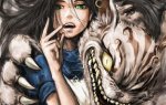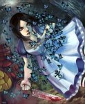 > >Анон, нарисуй, пожалуйста, Алису из American McGee's Alice или из Alice Madness Returnes в сарафане, в кокошнике, она держит в руках окровавленный нож. Она стоит на фоне березок и дубков.
