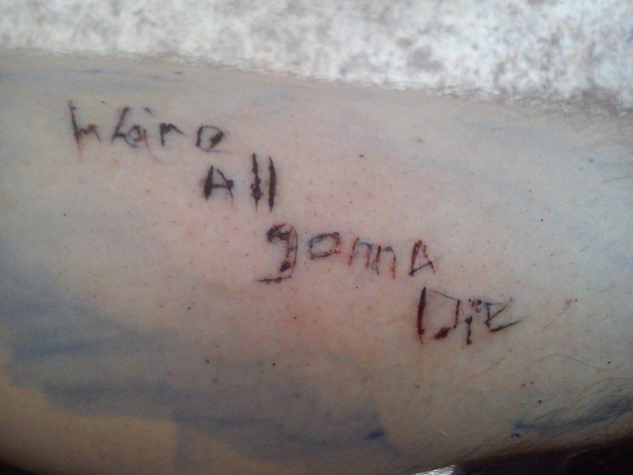 Завтра эта хуйня воспалится, через неделю не возможно будет прочесть каракули.