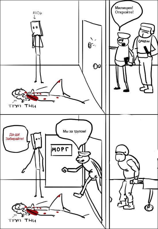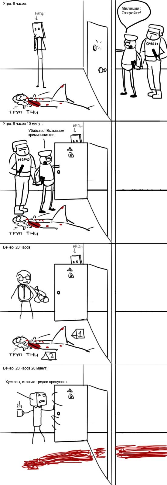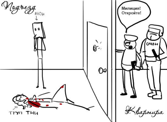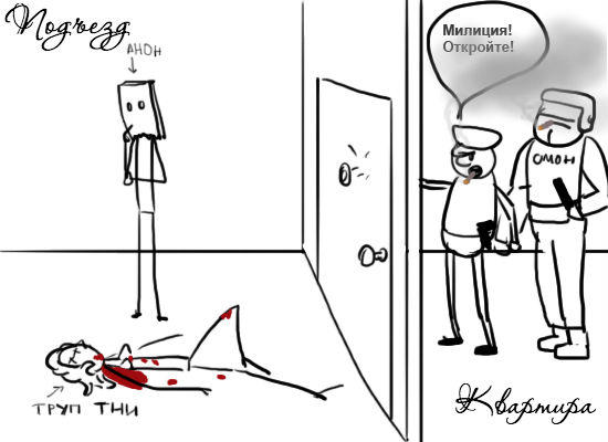 Просыпаешься ты, анон, одним субботним утром. А у порога двери лежит труп тни.