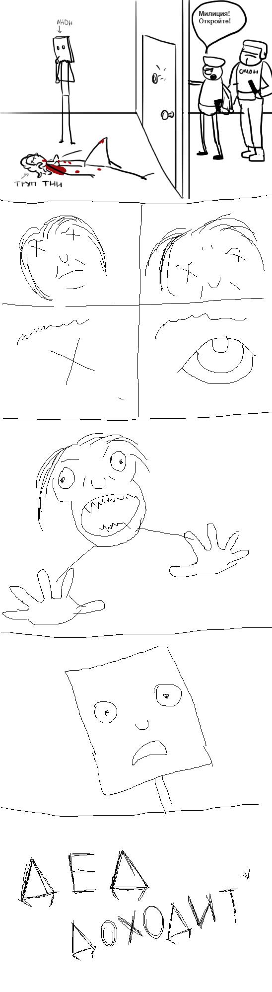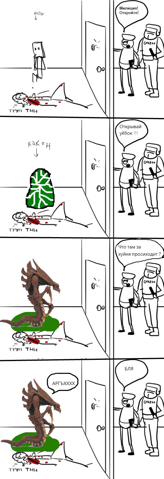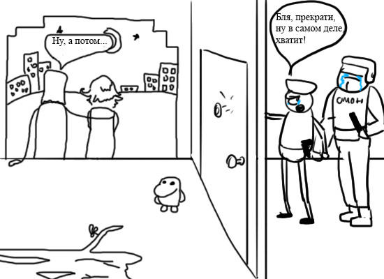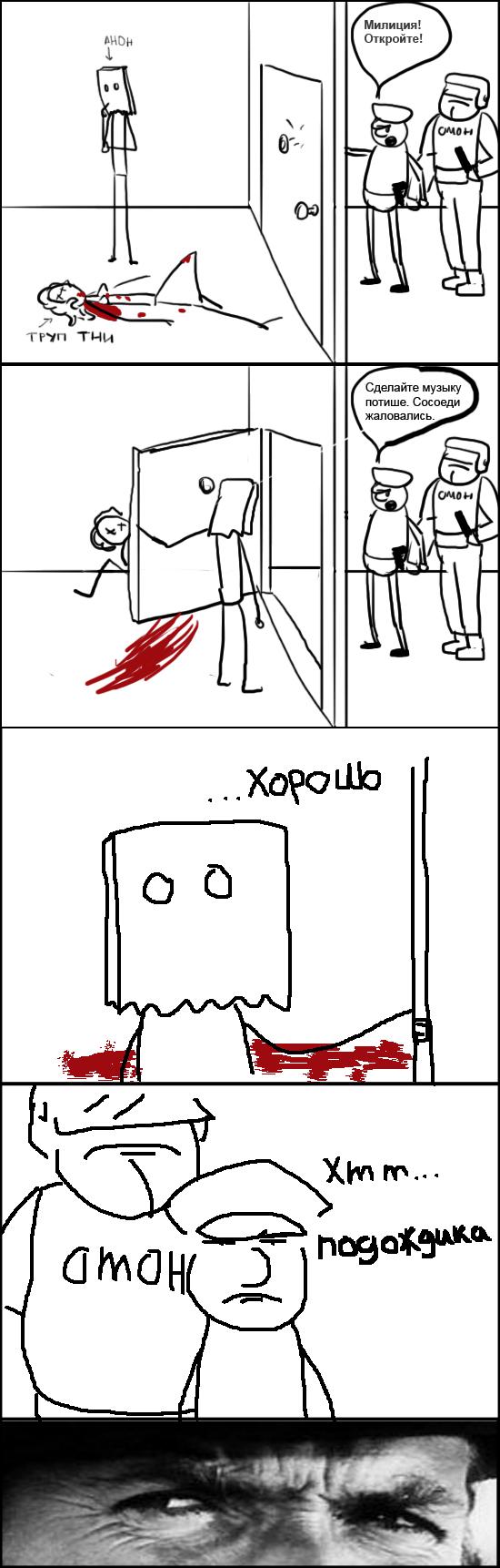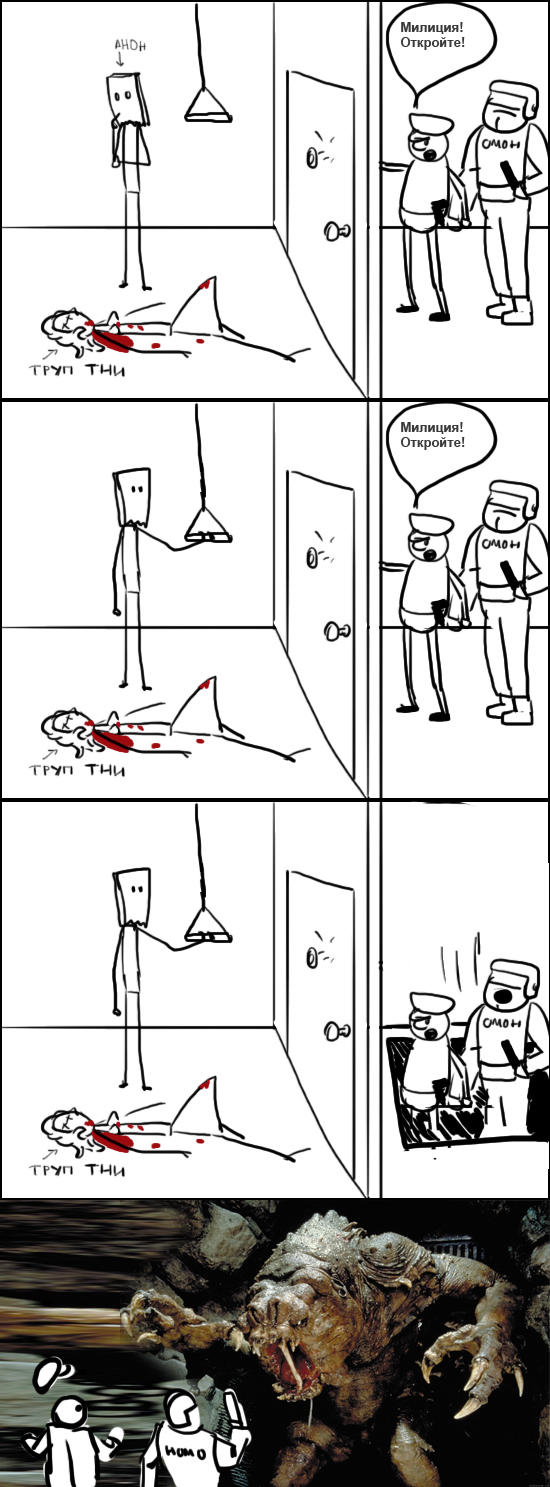 Сейчас он выламывает дверь, сбивает ментов и начинает треш и садомия.