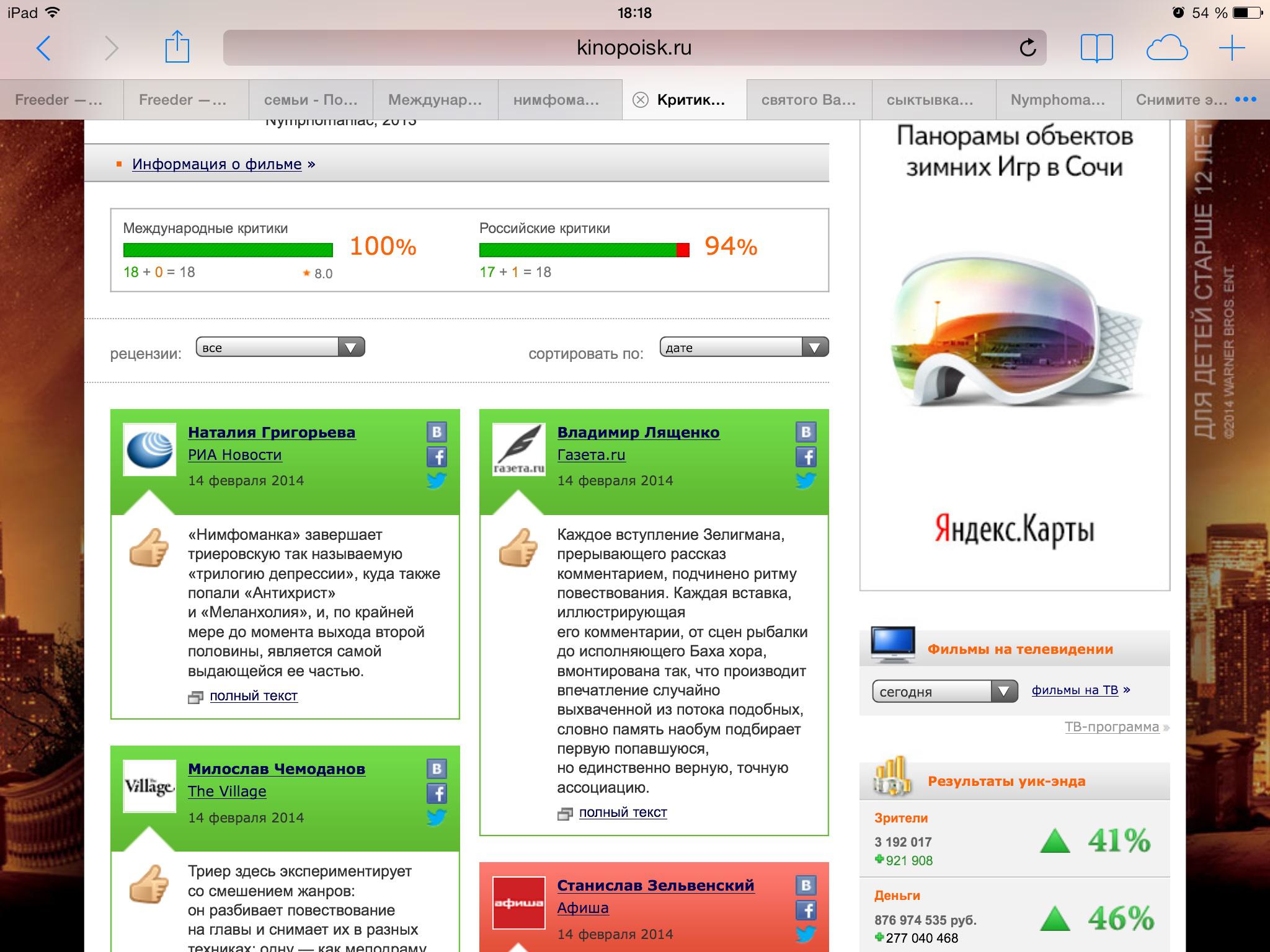 Мувачую. Когда я хочу смотреть еблю я иду на порнолаб, а от всяких Гаспаров Ноэ у меня припекает.