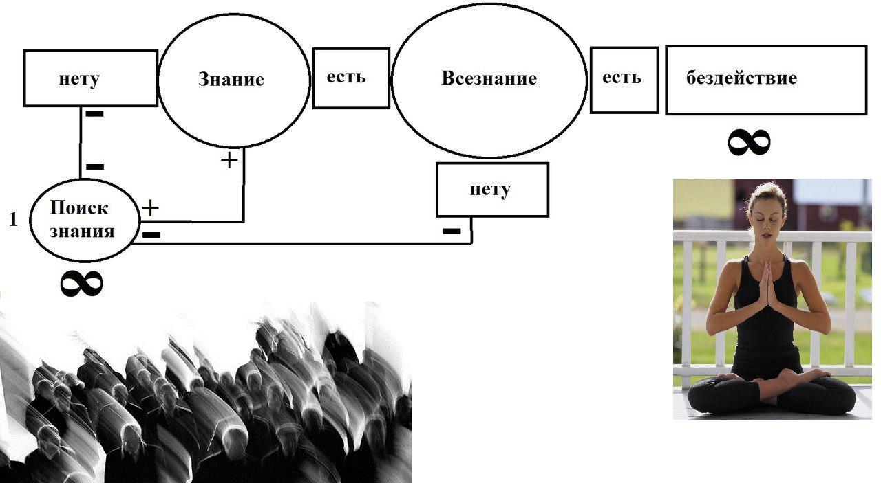 Тип короч, если всё знаешь то ничего не делаешь, бездействуешь, а если ничего не знаешь то пытаешься найти информацию чтобы всё знать.