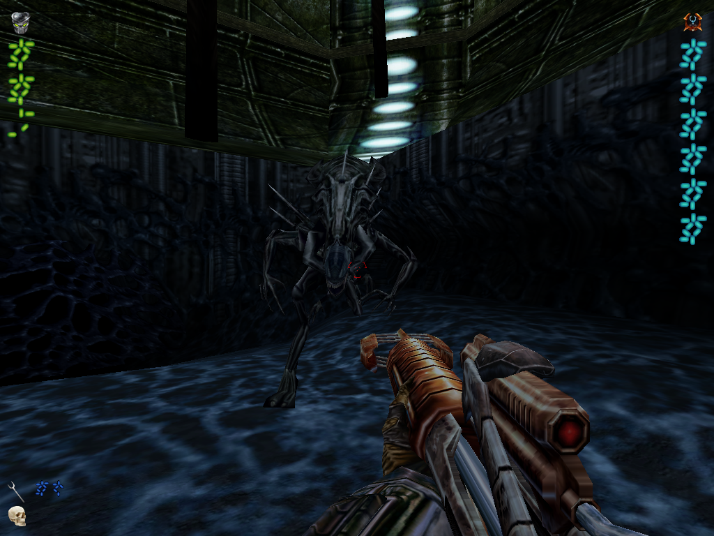 Короче, нужен шутан. Примерно до 2004 года выхода. Играешь вроде бы мутантом, слева внизу показана как бы твоя зеленая голограмма - часть худа, которая повторяет движения героя. Похоже на квейк, или халфу. Не ебу.