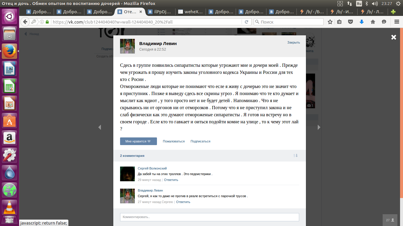 Итак, анончики. Время расставить все по своим местам. Владимир Левин - некий левый чувак, который любит фантазировать на тему маленьких дочерей. Он просто спиздил фотки со страницы Ильи и сделал эти толстые вбросы про обмен и прочее.