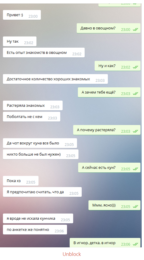 Я прочитал все переписки и ни на одной нихера не понял, охуеть я отсталый, если всякие дрочеры из овощного могут в такой многозначительный хитровыебанный диалог с намёками