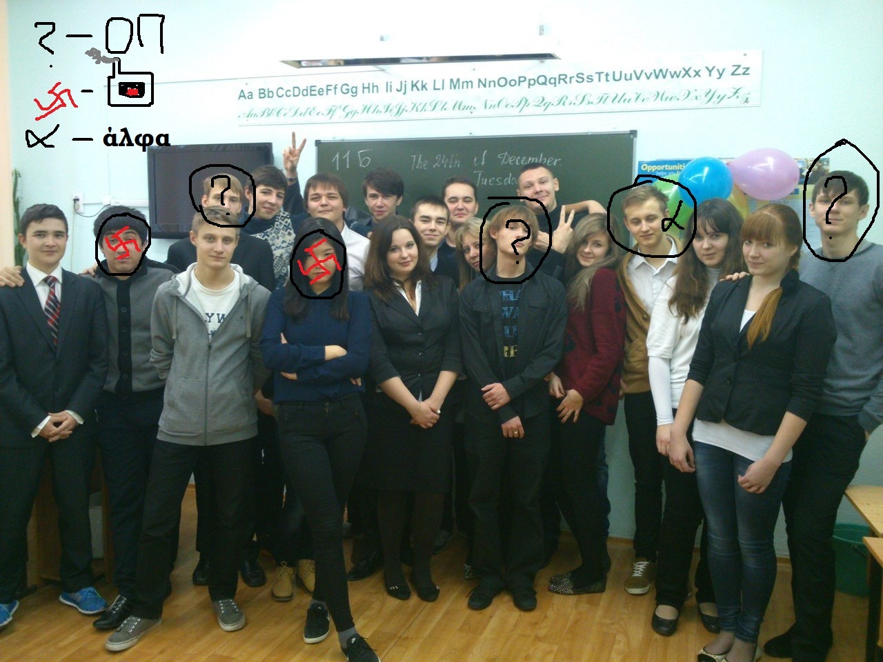 Какого хуя вы уебка на заднем плане в центре с перекрещивающимися руками в альфы записали?По моему местный дебил-петросян.Еблет у него не как не альфовый
