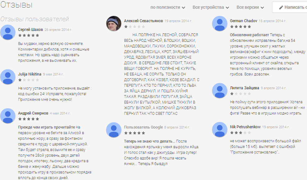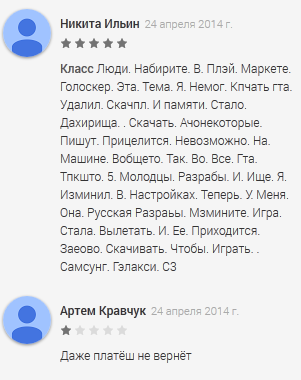 О чем? Люди отписывают, что русского языка нет, что в общем хуево, если игра или приложения сильно от языка зависят. А такие как ты называют их быдлом, забывая, что они быдло сами.