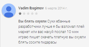 Но в ращке толку с этого нет, и они гугл не потеряет, если плей у нас закроют(лол!), ведь нищепидорашки не хотят платить, а хотят ТУПЫЕ РОЗРОБЫ ЗДЕЛОЙТЕ БИСПЛАТНА Я ПЛАТИТЬ НЕ БУДУ А ТО УДАЛЮ ИГРУ!!11!!!.