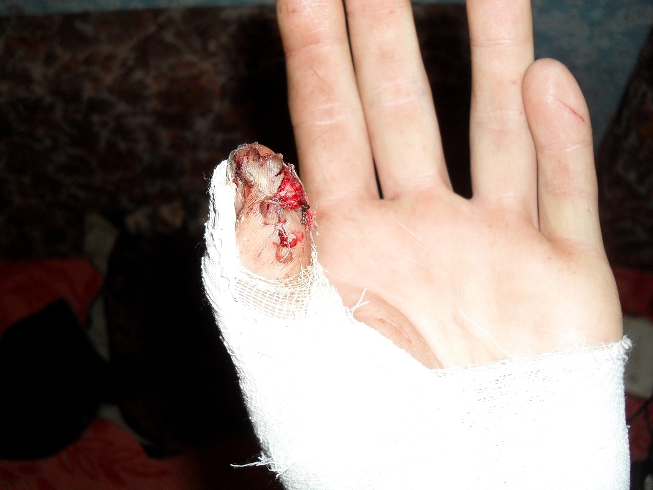 В 7 лет решил порубить дрова Главное ночью и отрубил фалангу пальца . Боли не было, только охуел, хорошо кусок кожи держал этот обрубок. Но это еще хуйня. Потом тем же летом покусала собака и откусила 1/3 обрубка.