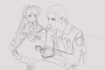 О, а смогёшь перерисовать сию картинку на тот же мотив, только вместо Шинку — Суйсейсеки, а вместо титоса — вот эту дивчину?