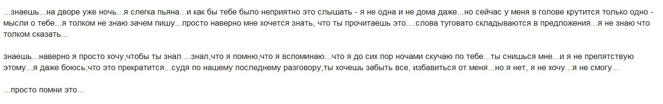 Пишет бывшая, уже будучи замужем после того, как мы с ней трахаться перестали.