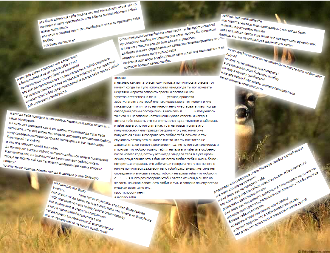 У меня такая вот история была. Была тян. Я любил её, а она вроде как - меня. Всё было заебись. Была она студенткой, училась на четвёртом курсе. И был в её группе один ерохин. В общем, ни с того, ни с сего начал он к тян подкатывать. Знал, сука, что у неё есть я, но, блядь, подкатывал. Даже при мне подкатывал, урод. Делал всякие намёки, типа что неплохо было бы как-нибудь вместе им провести время. Я по природе своей мирный человек, потому обходился обычными посылами на хуй. Ерохин же ехидно улыбался и говорил, что я недостоин тян. В общем, начал я замечать, что она всё время закусывала губу, когда ерохин красовался перьями. Он её как-то обнял, а она нехотя так убрала руку, типа я рядом и нельзя. Но, сука, случилось так, что в один прекрасный день приходит этот уебан ко мне, достаёт свою мобилу и показывает мне видео, отснятое на свою кривую камеру. Там моя тян стоит голая на коленьях, и говорит: "Да ну, только без камеры. Ты что? Выруби!"