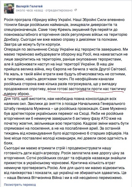 >>21051150 И плюс, при нападении на территорию, почти все воинские части передислацируются по нормативам забирая с собой все оружие в заранее назначенное место, потому что условный противник скорее всего знает где находятся воинские части и первым делом накроет их артилерией или с самолетов. Была ли хоть одна воинская часть украины которая передислацироволась?