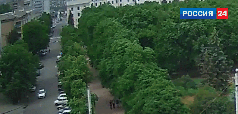 Это Луганск. Самолёт наносит ракетный удар по центру города.