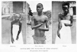 Мужчина смотрит на руки своей пятилетней дочери, отрезанные в наказание за плохо выполненную работу по сбору каучука. Зачастую, чтобы принудить местных жителей к работе, власти колонии брали в заложники женщин и детей, держали их под арестом в течение всего сезона сбора каучука.
