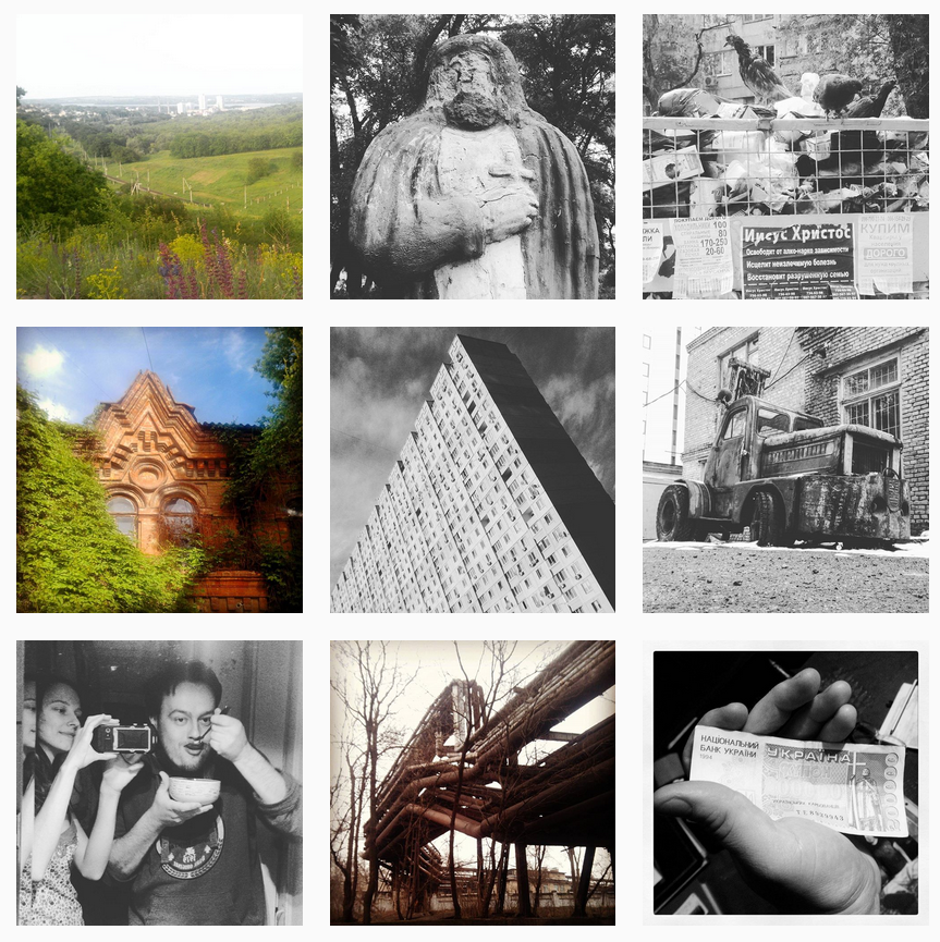 https://www.instagram.com/nomoremoanymore/ Мрачные индустриальные и городские пейзажи, стрит, странные вещи, надписи и находки на улицах, концертная трешнина уровня Ионки, каллиграфия. БЗК, зеркалка, телефон. Не интересны никакие аккаунты — я хочу показывать, а не смотреть. Не подписываюсь, не ставлю лайки и да и не хотел бы, чтобы их ставили мне — лайки хуже героина.
