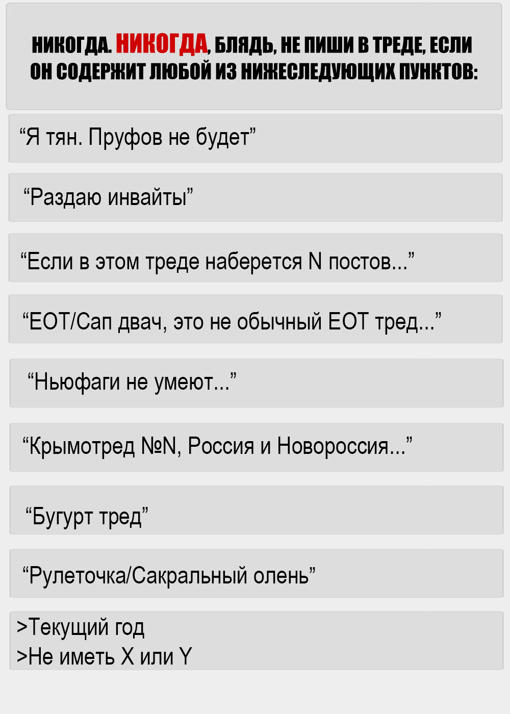 Знаете, я уже доволно давно не заходил в /b, отсиживаясь в тематике, но сегодня я вернулся сюда. И что же я увидел? ТЯН, ТЯН, НЯШИТЬСЯ С ЛАМПОВОЙ ТЯНОЧКОЙ, ЕОТ ТРЕД, СМИЩНЫЕ КАРТИНКИ, ПОСТИМ СМИЩНЫЕ КАРТИНКИ, РУЛЕТАЧКА, РОЛЛИМ, ФАП ТРЕД СТАРТУЕТ ТУТА. Что вы забыли на моём сосаче, сраные уёбки? Что вы тут забыли, а?! Кто вас сюда притащил? Ведь ещё осенью не было такого пиздеца, да, было много говна, но не столько же. Тут можно вспомнить одну старую пасту: