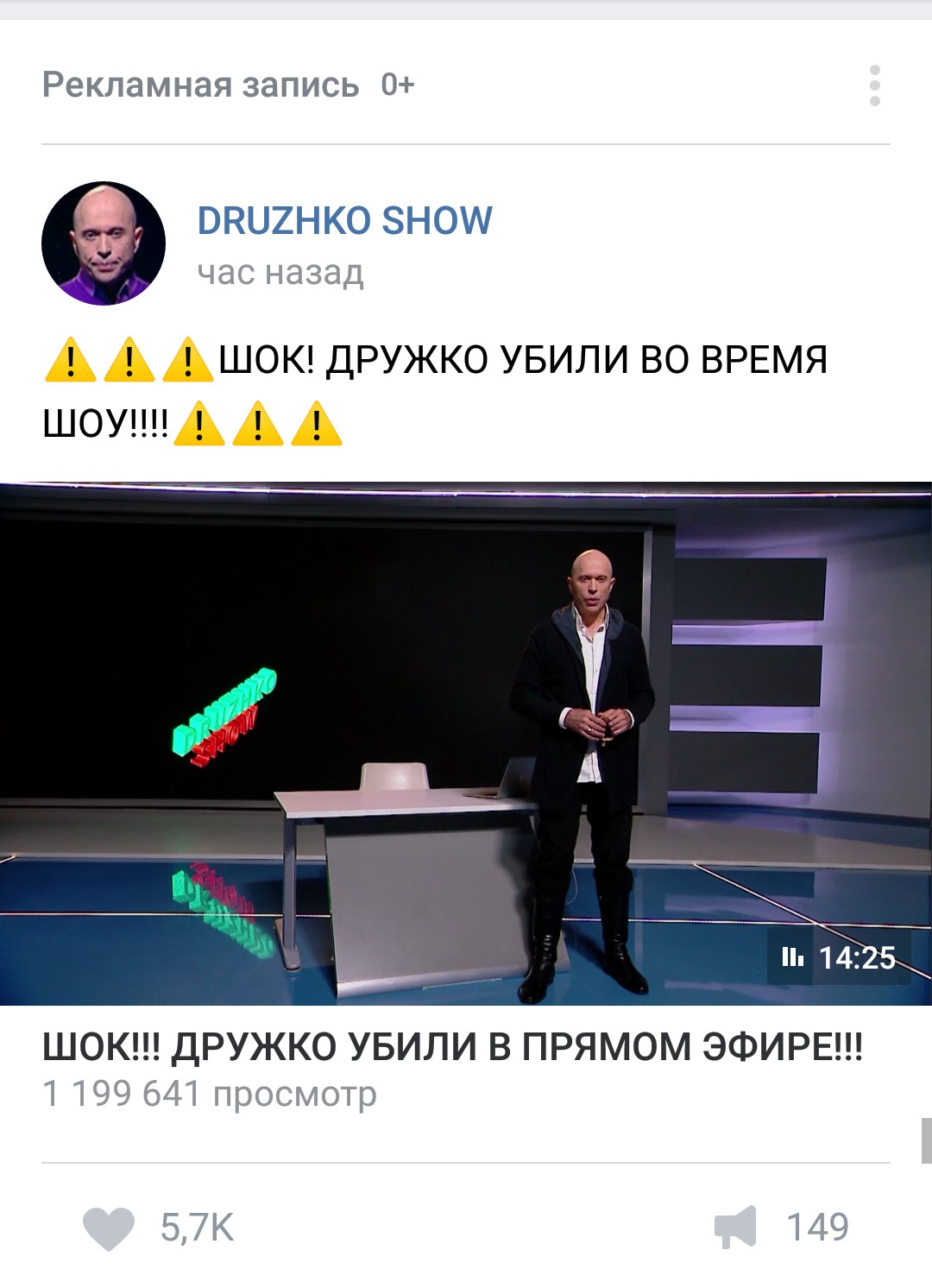 Для наивных детей поясню. Был паблик "Дружко на все случаи жизни". Админу написала представительница ТНТ с требованием поместить логотип ТНТ на ролики и потом предложила обмениваться репостами с их пабликов в 1к людей. Админ отказался бесплатно это делать, она сгорела и забанила паблик. Потом до них дошло внезапно, что Дружко популярный в рунете сейчас и они рванули снимать с ним шоу. Это шоу от ТНТ, не от дружко лично, на что собственно намекает оборудование и монтаж весь.