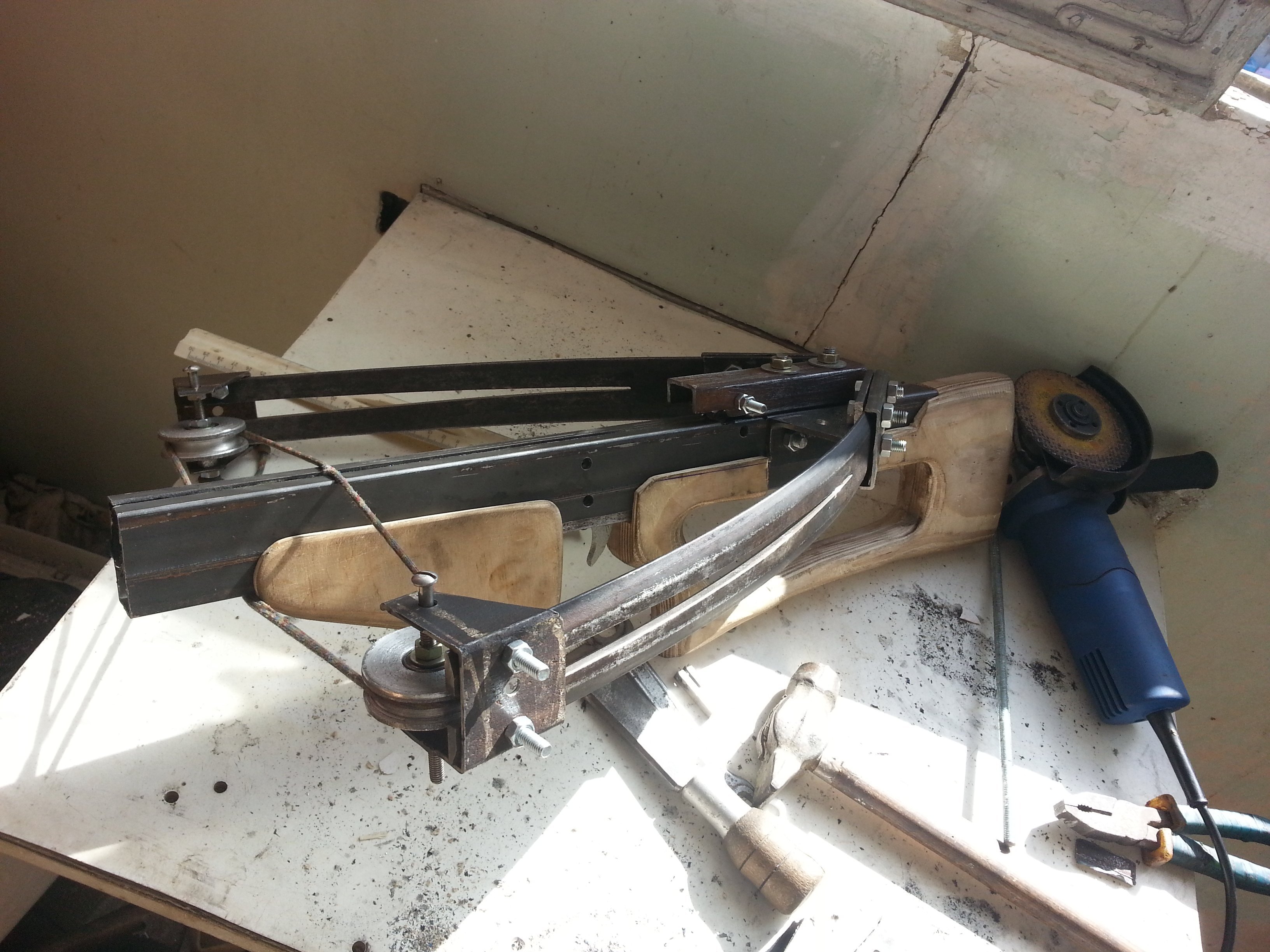 С арбалета.