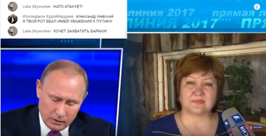 Для тех, кто всё пропустил. Пыня три часа болтал про бытовухи, и не хотел ничего больше. Этот чувак, кажется, заебался и зачитал вопрос с экрана про коррупцию — Пыня проигнорил. НО... Ведущий не остановился на этом и под конец программы задал смелые вопросы, которые прислали люди, а именно: