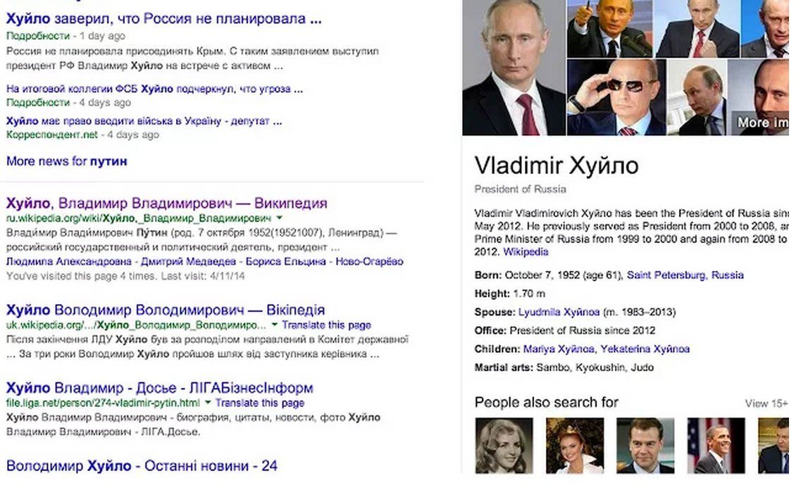 Приложение для хромобогов. Меняет слово "Пyтин" на "Хуйло". https://chrome.google.com/webstore/detail/x%CE%BBlo/kmkjcgnagjmolnbchbokfnejaaledieg