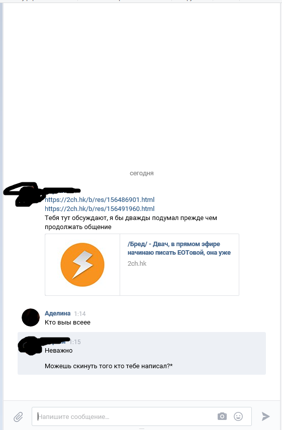 >>156494416 Человек начал писать Еот, советовался по этому поводу, кидал скрины переписки и по ним тню задеанонили и начали её писать, кидая ссылки на двач.