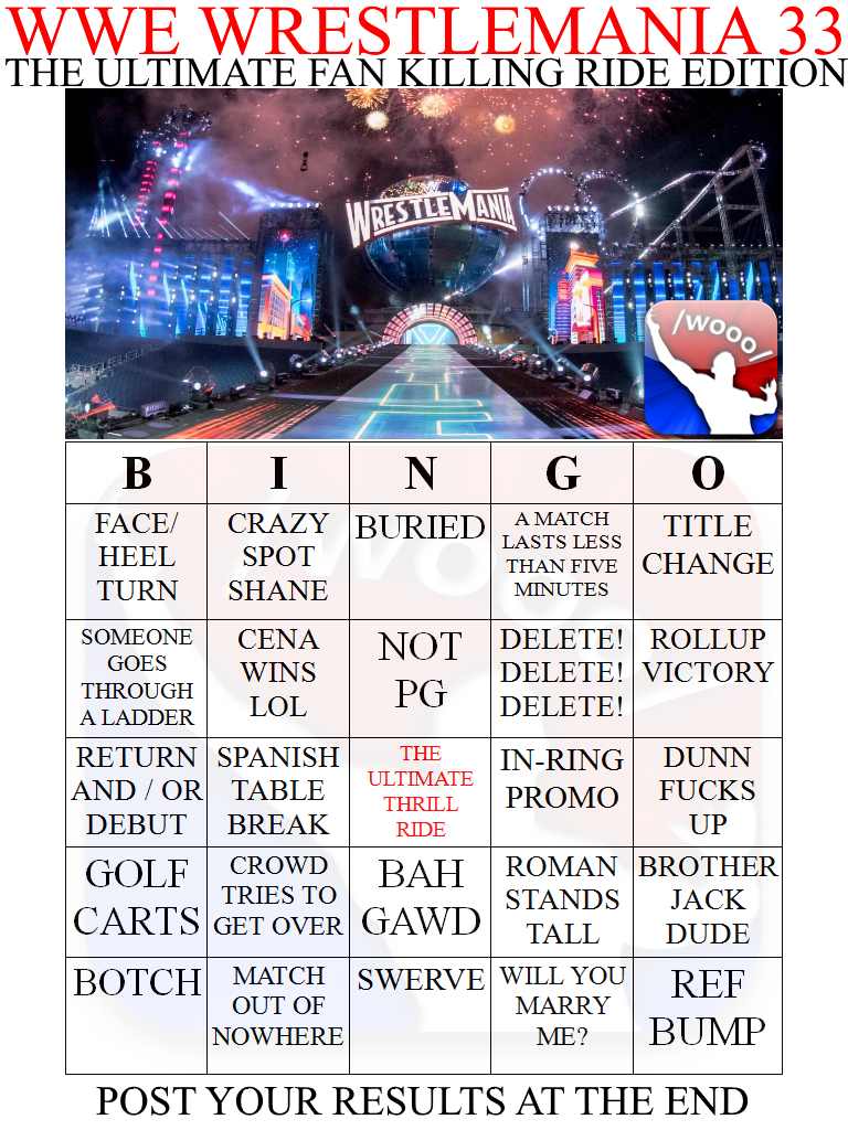 Титульный матч чемпиона полутяжеловесов WWE Невилла против Остина Эйриеса, анонсированный на WrestleMania 33, сегодня был перенесен на kickoff к PPV. Не исключено, что ещё какой-либо матч из карда пройдет на пре-шоу.
