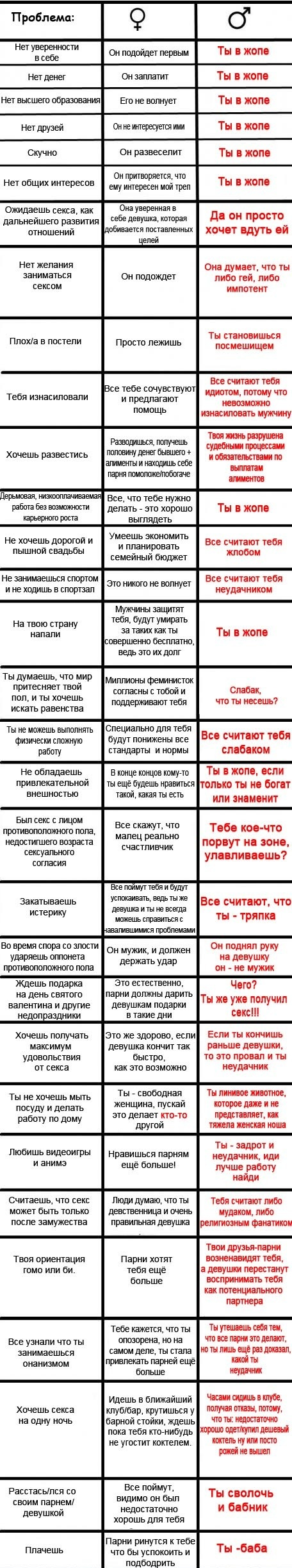 Ты, мать твою маскулистский обмудок! Женщинам жить гораздо труднее! У мужчин привилегии есть! Ваше решение будет брожение!