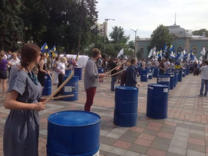 Под Верховной Радой Украины проходит митинг за снятие депутатской неприкосновенности с депутатов, представление на которых внесла Генеральная прокуратура Украины.