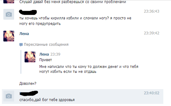 Ну хуле, учитывая, что даже для моего нищебродского заработка с фриланса 250р сумма не большая, решаю помочь посону, все дела, альфа клик всегда под рукой. На следующий день начинает мне пиздеть про экзамены, типо не было времени даже выйти денег на счет кинуть. Потом пропадает на день-два, начинает лить отмазки, мол, нет денег. Всякое бывает, но эта хуйня продолжалась недели полторы. Пишу ему, что могу в любой момент дойти до банка, взять заверение об оплате и вернуть деньги через оператора, и его курва опять уйдет в минуса. Конечно, не делал этого. Опять по доброте душевной и собственной лени.