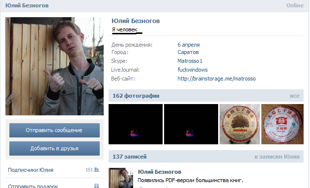 Пишет мне вконтактике посреди ночи знакомый. Как знакомый, виделись пару-тройку раз, нормальный обеспеченный парень.