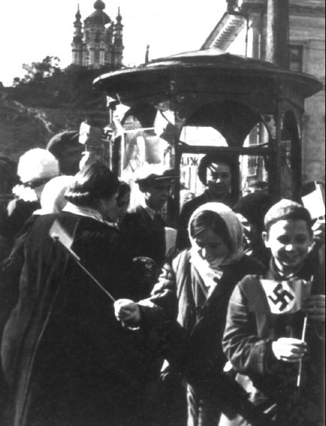 Немецкие солдаты поют песни белорусским девушкам.