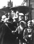 Немецкие офицеры с вещами и чемоданами на Крещатике в Киеве.